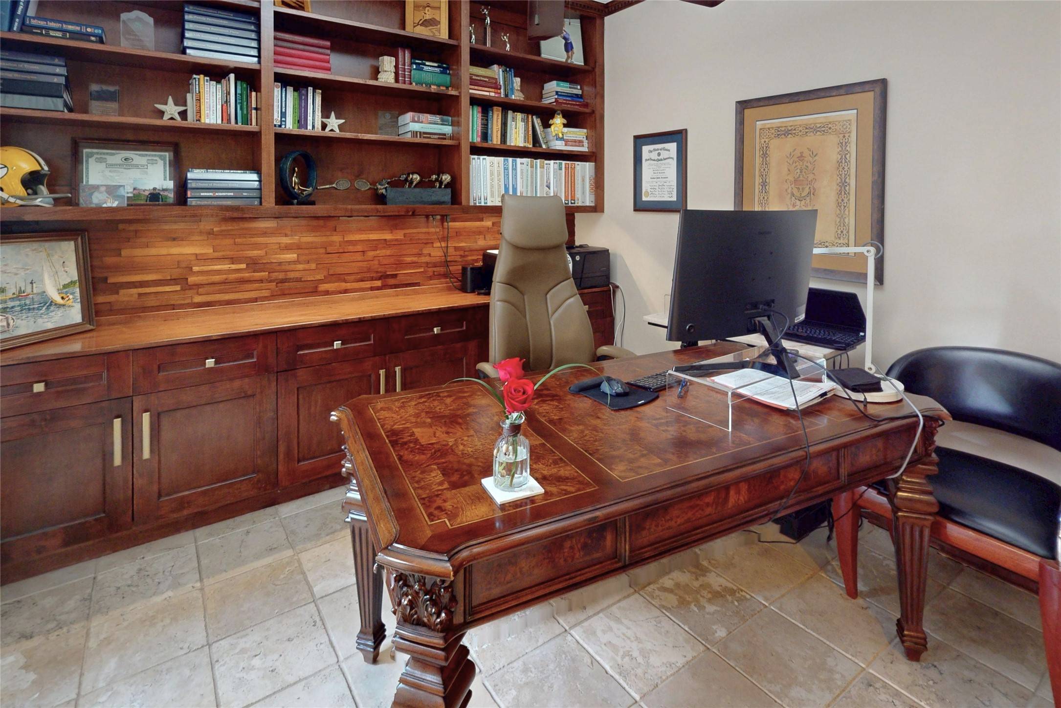 Spectacular and unique custom built, Energy Corridor Modern home in a sought after Memorial community. This property has been meticulously maintained and recently remodeled, sparing no expense in quality of materials and construction. Located in a secured and guarded neighborhood, this gorgeous home is situated on one of the largest lots, boasting almost 1/3 acre, backing to a wooded ravine with the utmost in privacy. The heated 40 foot pool is surrounded by upscale pavers and decks and includes an adjacent full bath cabana with tiled walk-in shower. Meditate in the Zen flower garden with water feature. Breathtaking entry into the two story living room with floor to ceiling windows and soaring ceiling, open to the upstairs gameroom which overlooks the pool and back yard The spacious primary bedroom downstairs with French doors to patio and pool. The kitchen is stunning with recent SS appliances and quartz counters Repiped with PEX! .Zoned to highly coveted Barbara Bush Elementary.